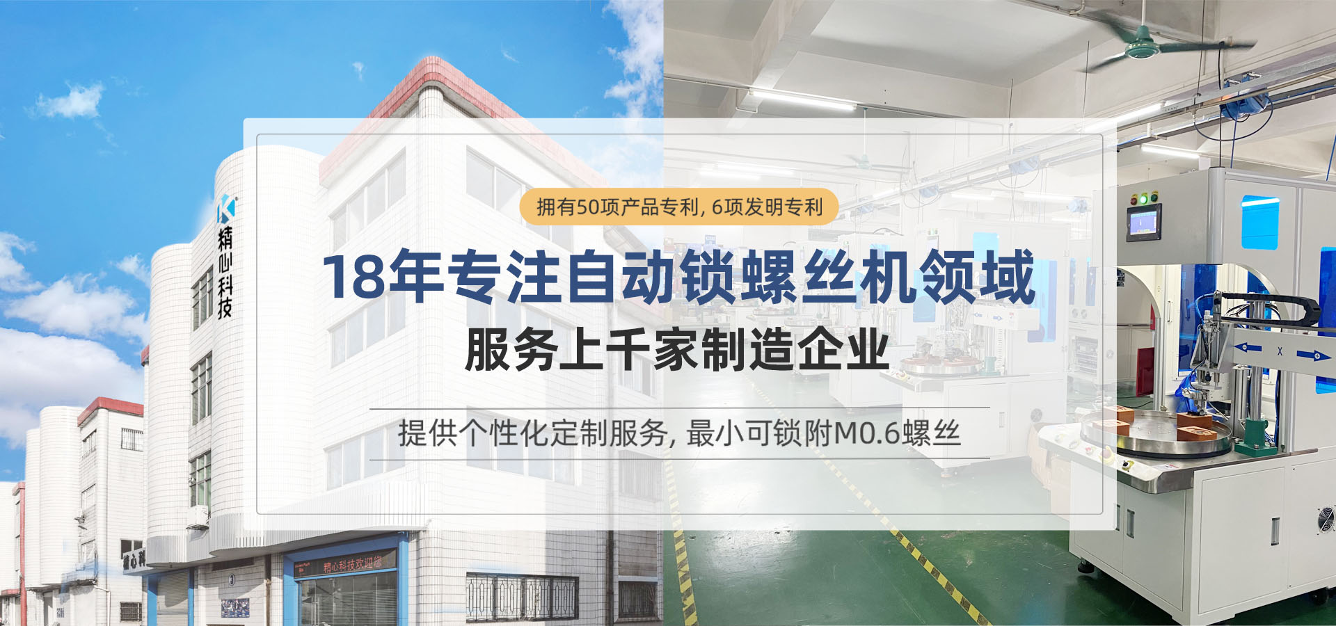 東莞市精心自動化設備科技有限公司是專業研發(fā)和生產多軸式自動擰螺絲機、手持式自動打螺絲機、桌面式自動螺絲機、在線式全自動螺絲鎖附機、自動送釘機等多種自動鎖螺絲機的生產廠家,一直專注螺釘裝配自動化領域,持續(xù)鉆研螺釘擰緊自動化技術,是國內工業擰緊自動化行業的先行者和堅決開拓者,多年來積累了豐富的行業經驗和專項技術,已經獲得專利23項,其中發(fā)明專利5項,現有八大系列的標準設備和定制型專用設備,已經廣泛用于通訊、電視、汽車、摩托車、電子、電器、五金、塑膠、玩具等各個行業,并持續(xù)為客戶創(chuàng)造價值… 精益求精、心無旁騖,十幾年來,精心人始終集中精力鉆研打造各種自動鎖螺絲機系列設備,憑著執(zhí)著的工匠精神、過硬的品質和完善的服務,為制造業的轉型升級貢獻自己的力量,不斷地為客戶提供更好的設備和技術,在開往工業4.0時代的征途上,東莞精心自動化始終是您誠摯的合作伙伴…